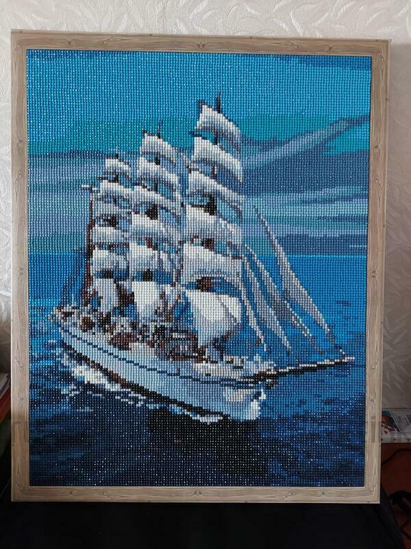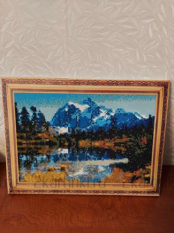 Все очень понравилось, первый раз заказала три картины с алмазной мозаикой, на фото уже одна из них собрана. Заказала уже ещё три, оду из них картину по номерам. Очень небольшой выбор картин на подрамнике больших размеров 50×65, хотелось бы выбрать побольше и размером тоже. А тут все устроило, особенно цена.