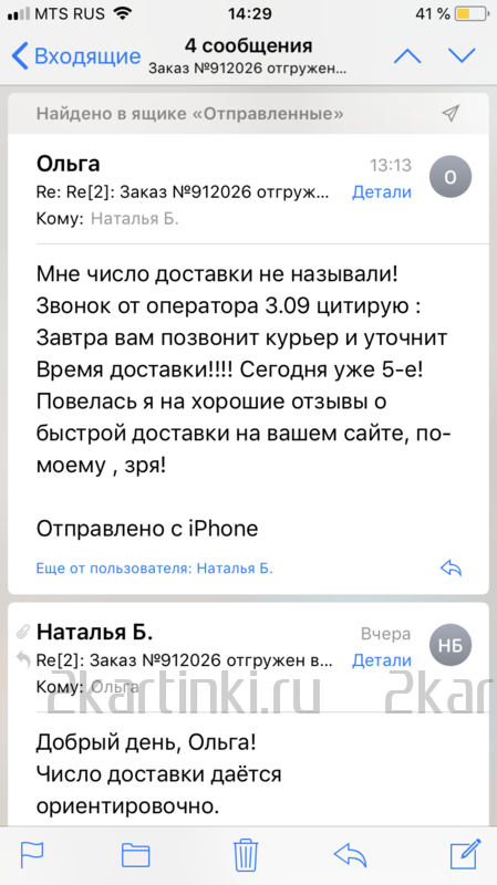 Уже в четвертый раз делаю заказ в вашей компании, правда, первые три раза работала с Владивостоком. Все приходит четко, как обещали, вовремя. Спасибо большое. Надеюсь на дальнейшее сотрудничество.