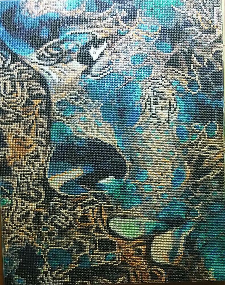 Наконец- то добралась до этой картины. Жаль фото не передает всей глубины красок и игры стразов.