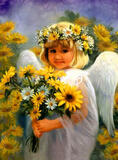 Алмазная вышивка «Ангелочек на поляне ромашек и подсолнухов» 40x50 см