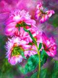 «Бабочка над цветущими пионами»