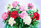 Алмазная вышивка «Букет красных, розовых и белых пионов» 40x50 см