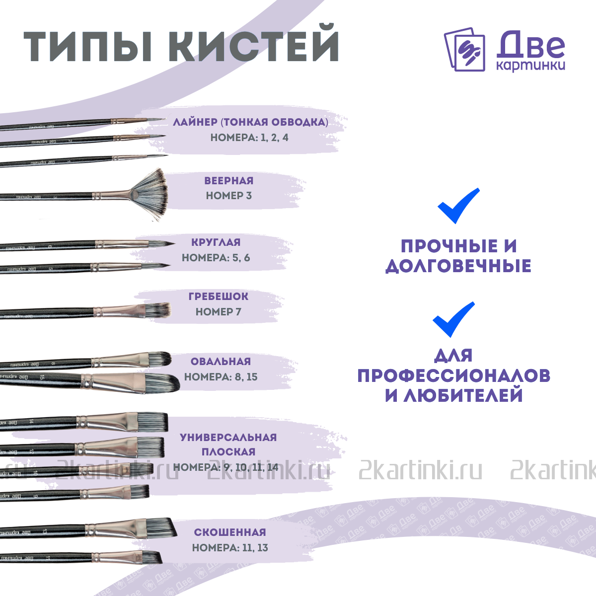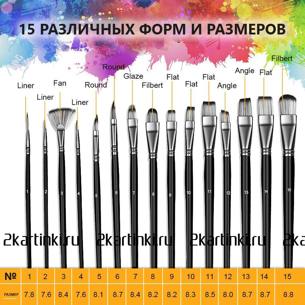 Номер кисти соответствует реальной ширине пучка в миллиметрах.