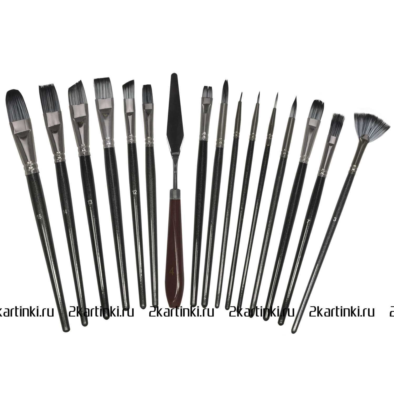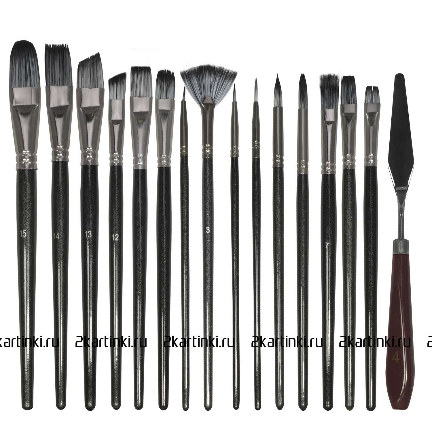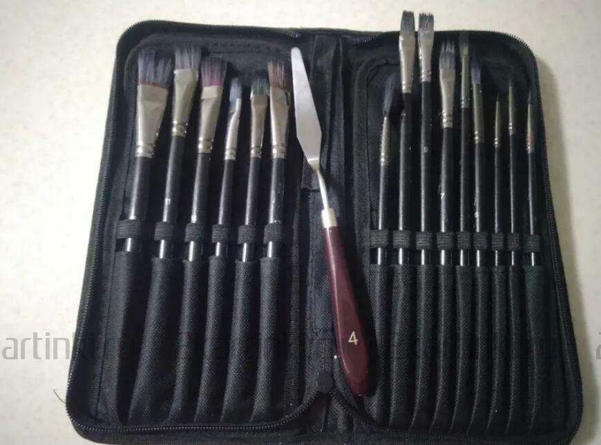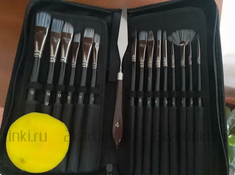 • В наборе 15 кистей, 1 мастихин