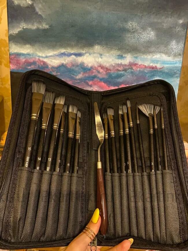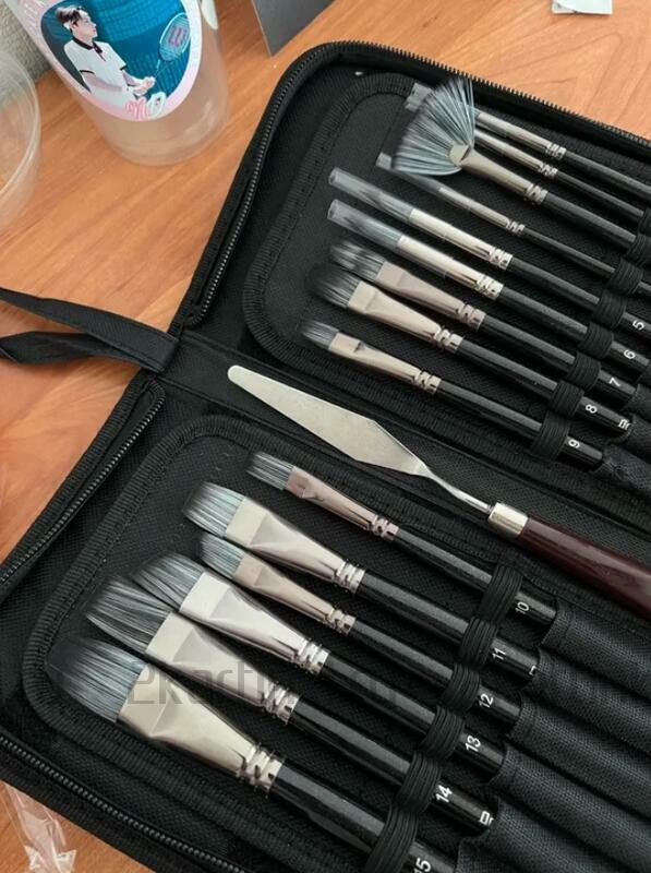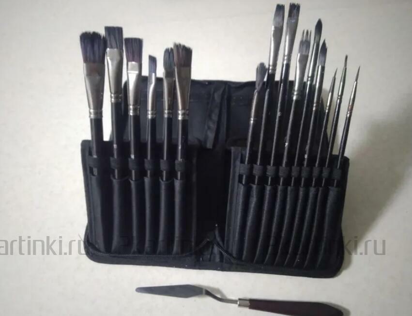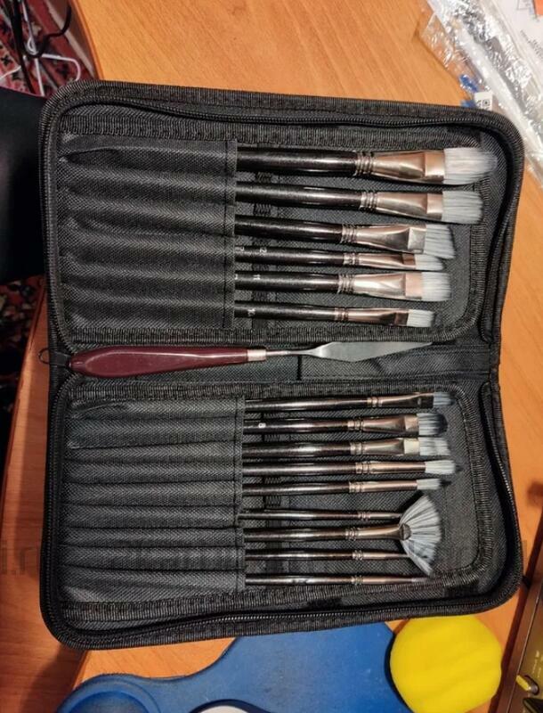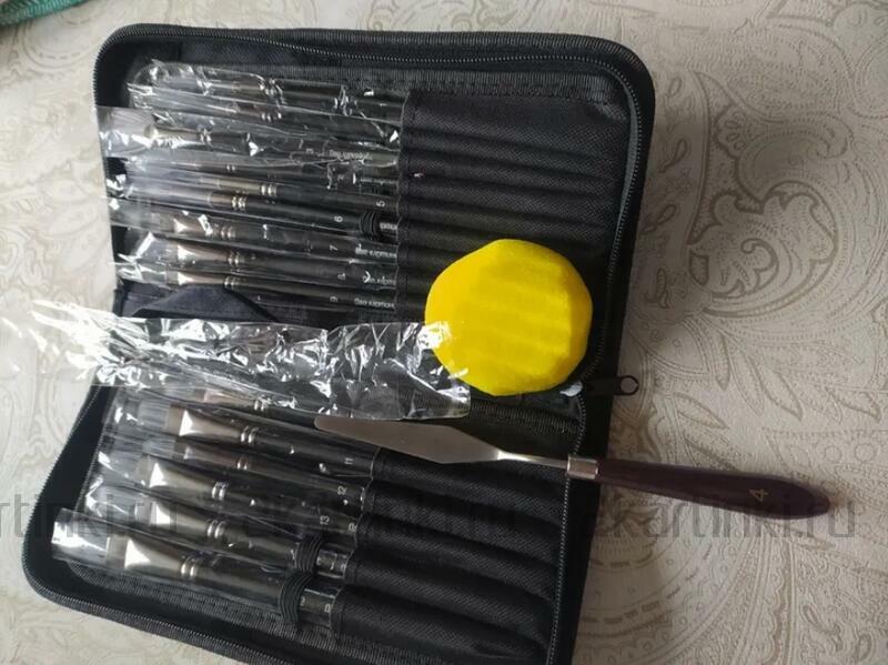 отличный набор. пользуюсь уже около полугода, никаких нареканий. большое количество разных кистей плюс бонусом ещё и мастихин. удобный чехол для переноски