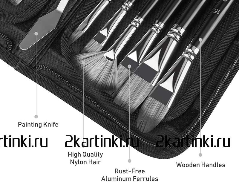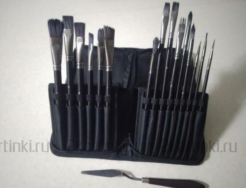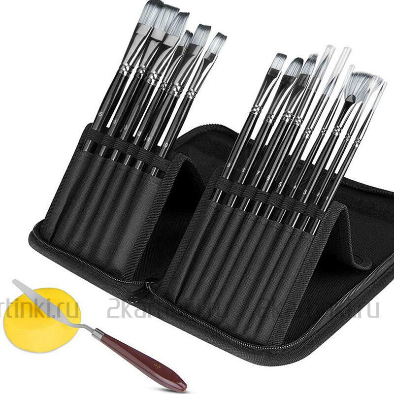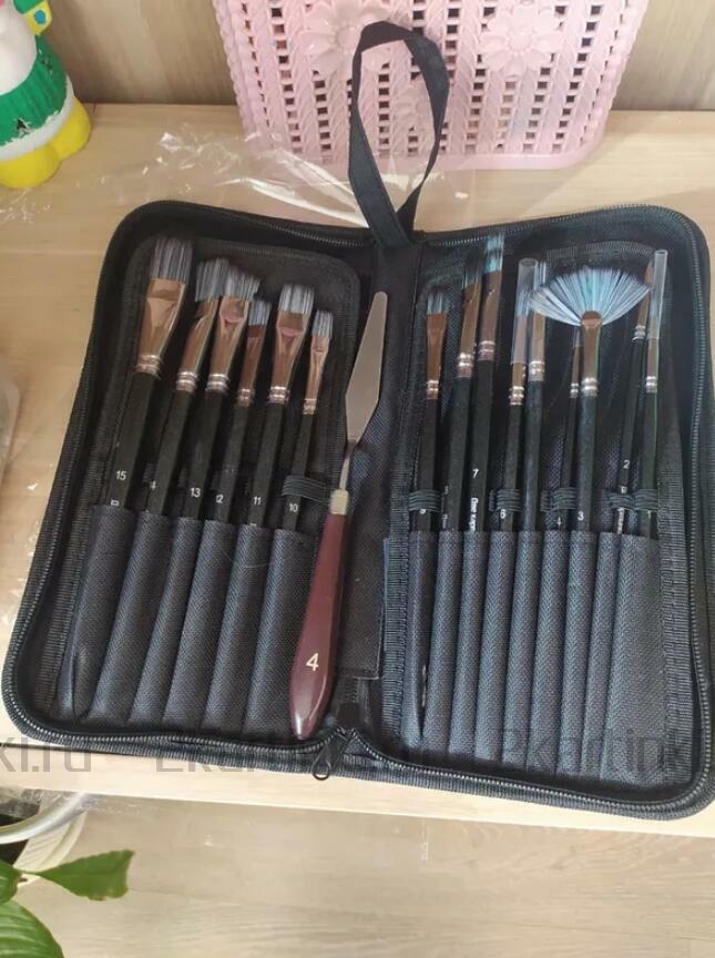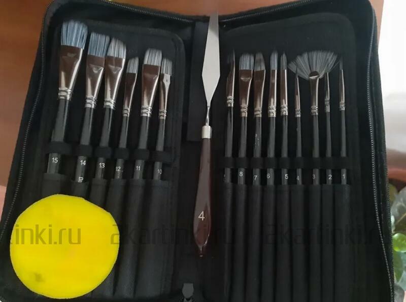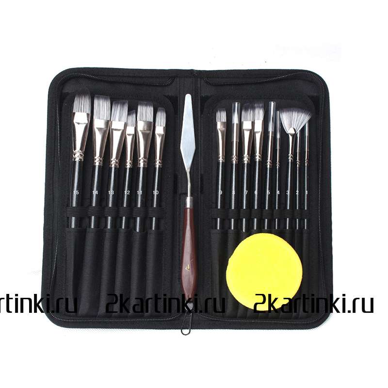 Кисть и мастихин «Набор кистей для рисования в чехле, премиум набор (15 нейлоновых кистей, 1 мастихин)» размером см. купить по выгодной цене 1 270 ₽ с доставкой по Москве и всей России.