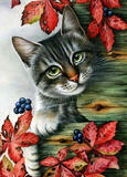 Картина по номерам «Кот выглядывает из-за бревна» 40x50 см