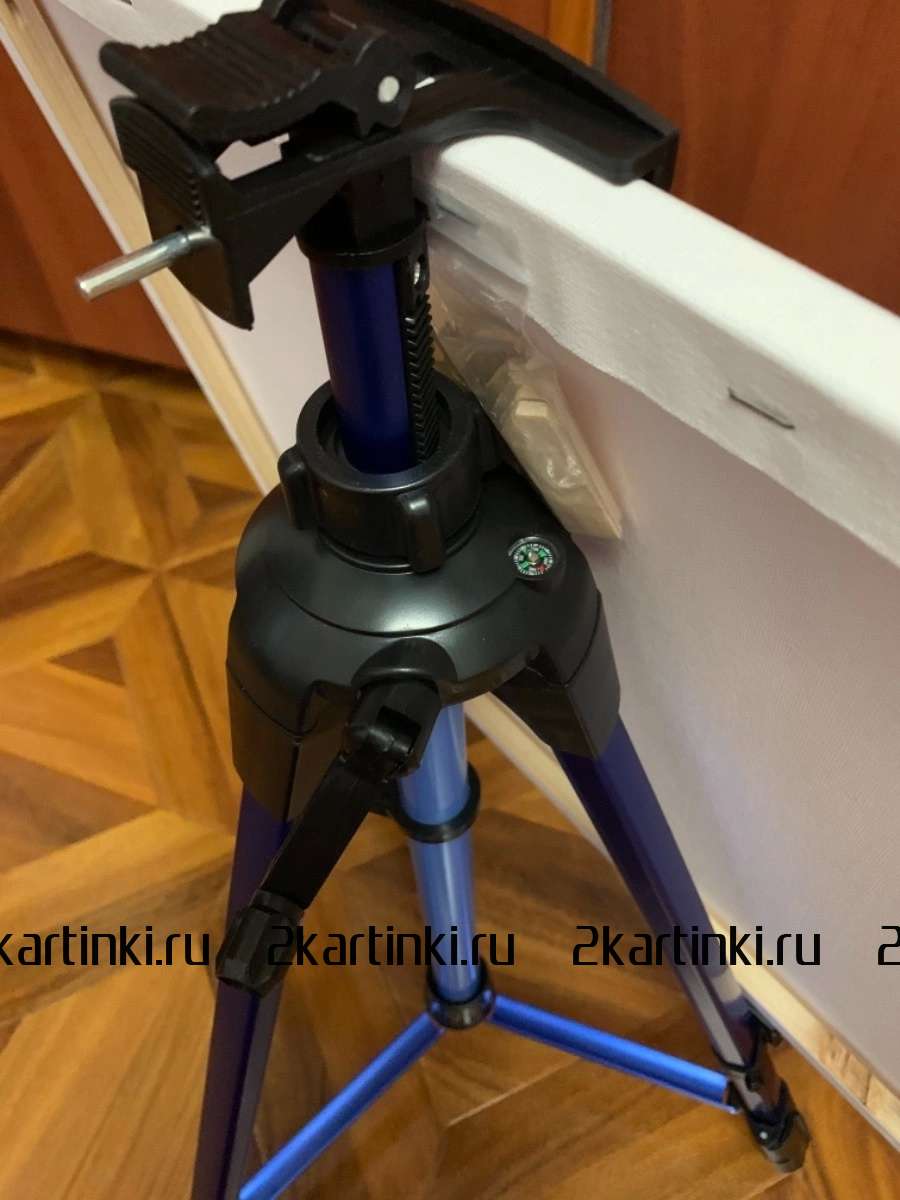 Легкая тренога с телескопическими ножками, удобно менять высоту мольберта, устойчивый. Цена подарок!