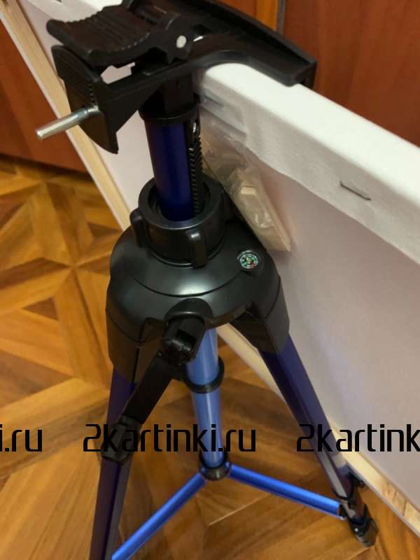 Телескопические ножки регулируются по высоте, что позволяет располагать треногу как на полу, так и на столе. Максимальная высота холста, который можно установить - 80 см, минимальная - 30 см Есть компас и уровень.