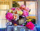 Для постоянных клиентов действует гибкая система скидок. Для покупки товара «Пионы в вазе у окна» - оформите заказ онлайн или получите консультацию менеджера по телефону: +7 (495) 120-60-67.