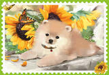Алмазная вышивка «Шпиц среди подсолнухов» 11x16 см
